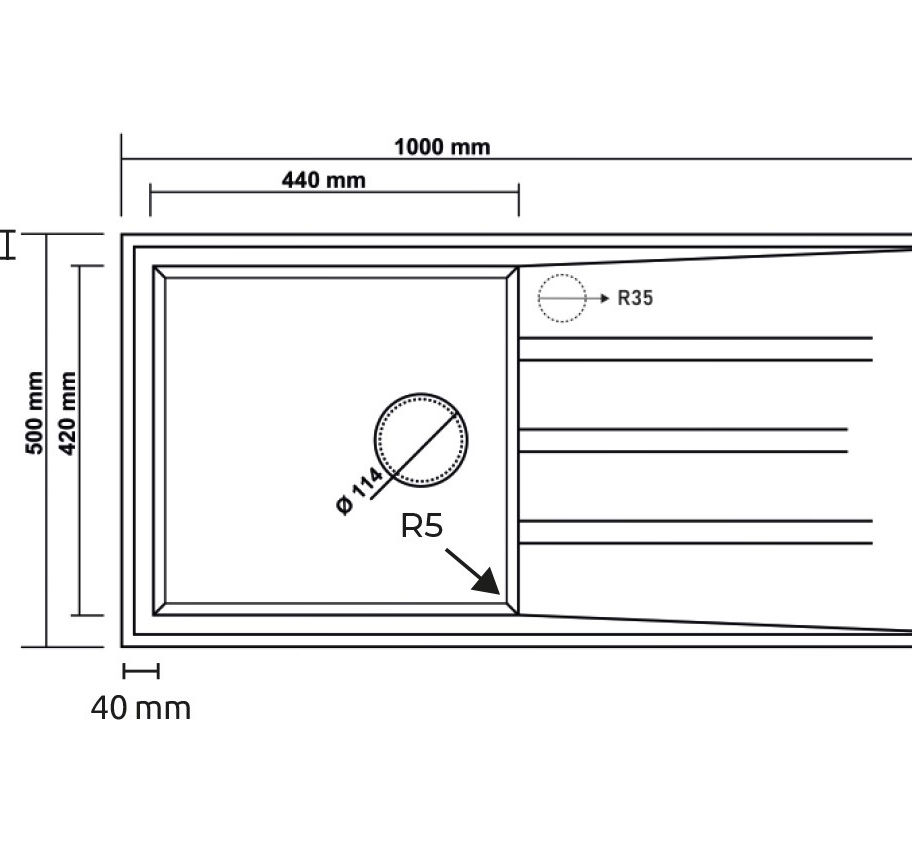 Tezgah Üstü Kesim Ölçüsü: 980x480